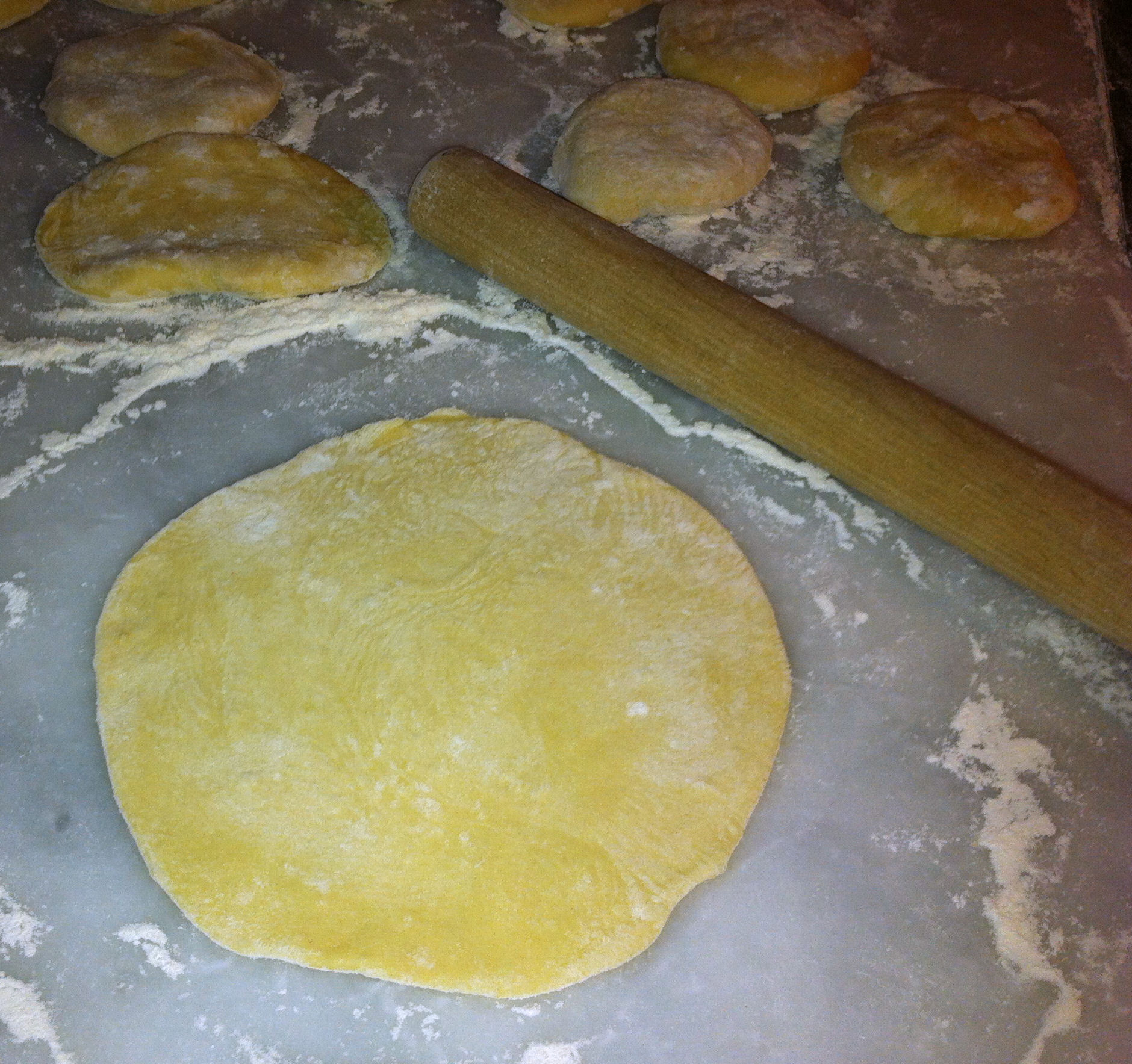 10. Place about 3-4 Tbs. in the center of a dough disk.