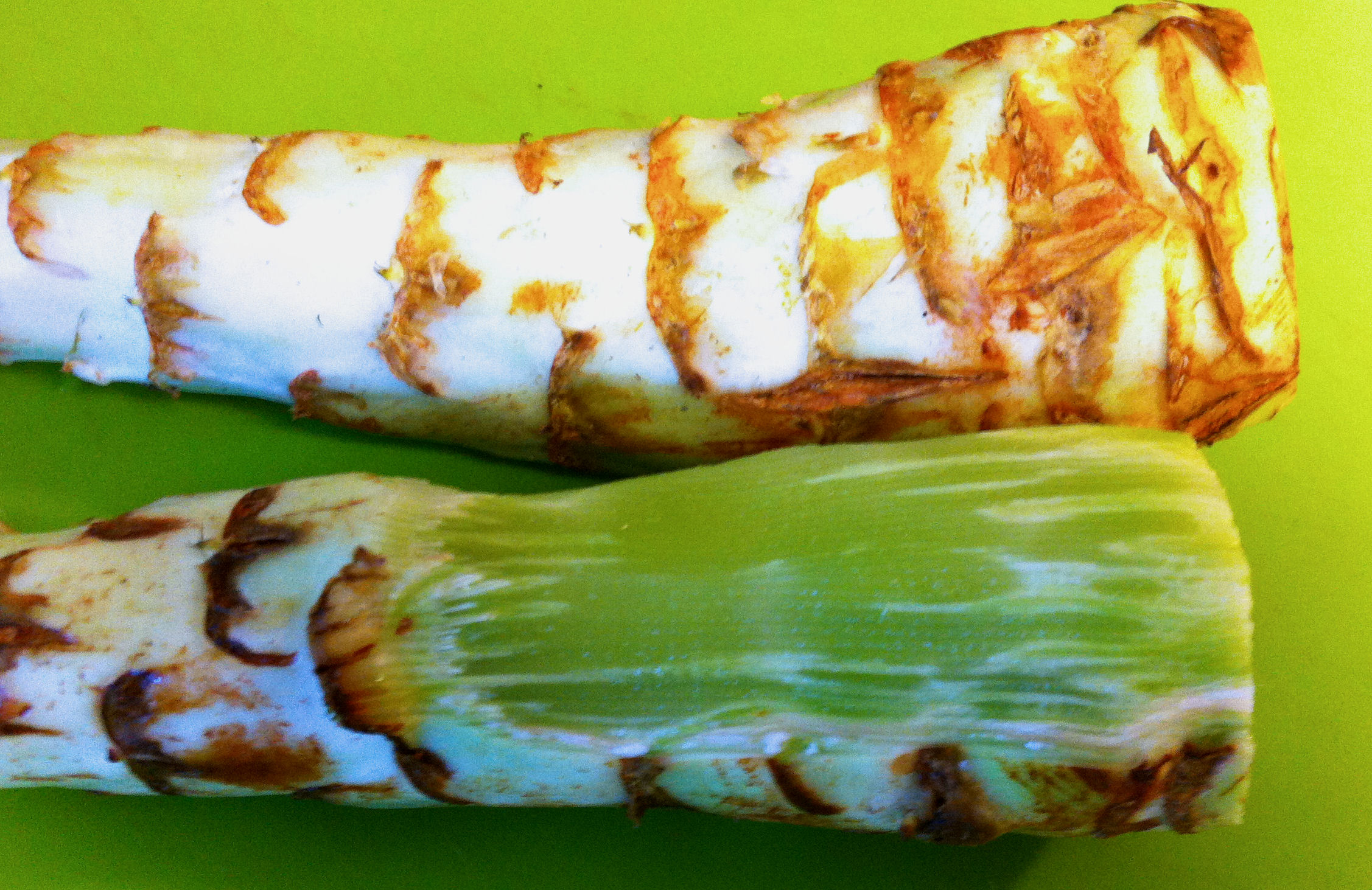 In my discussion of garlic stem I noted that there was very little waste. You could eat almost everything you paid for. Lettuce stem is just the opposite. Almost half of the weight that you are buying is tossed into the compost. If you want half a pound of lettuce stem to cook you need to buy one pound in the market.