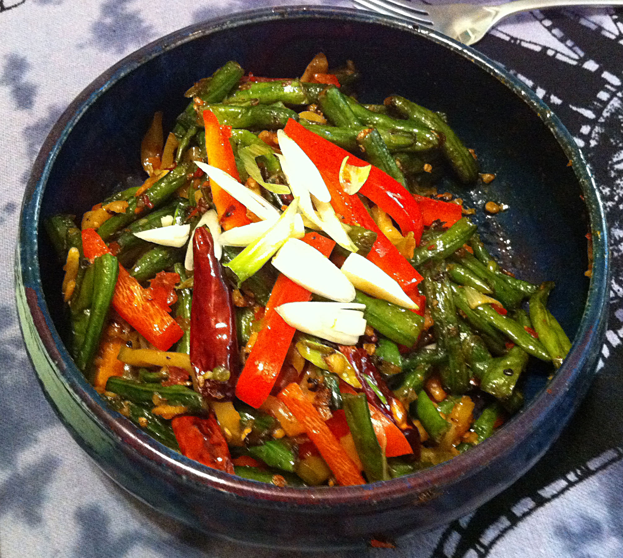 Chinese long bean is one of the vegetables that we were introduced to in our time in Chengdu (25 years ago). They are about two feet long and are thinner, tougher and have a rougher skin than Western green beans. Although most American Chinese restaurants use Western green beans in their dishes—because of availability and American tastes—this is the green bean called for in traditional recipes. Today, you can find them in most Chinese specialty stores.