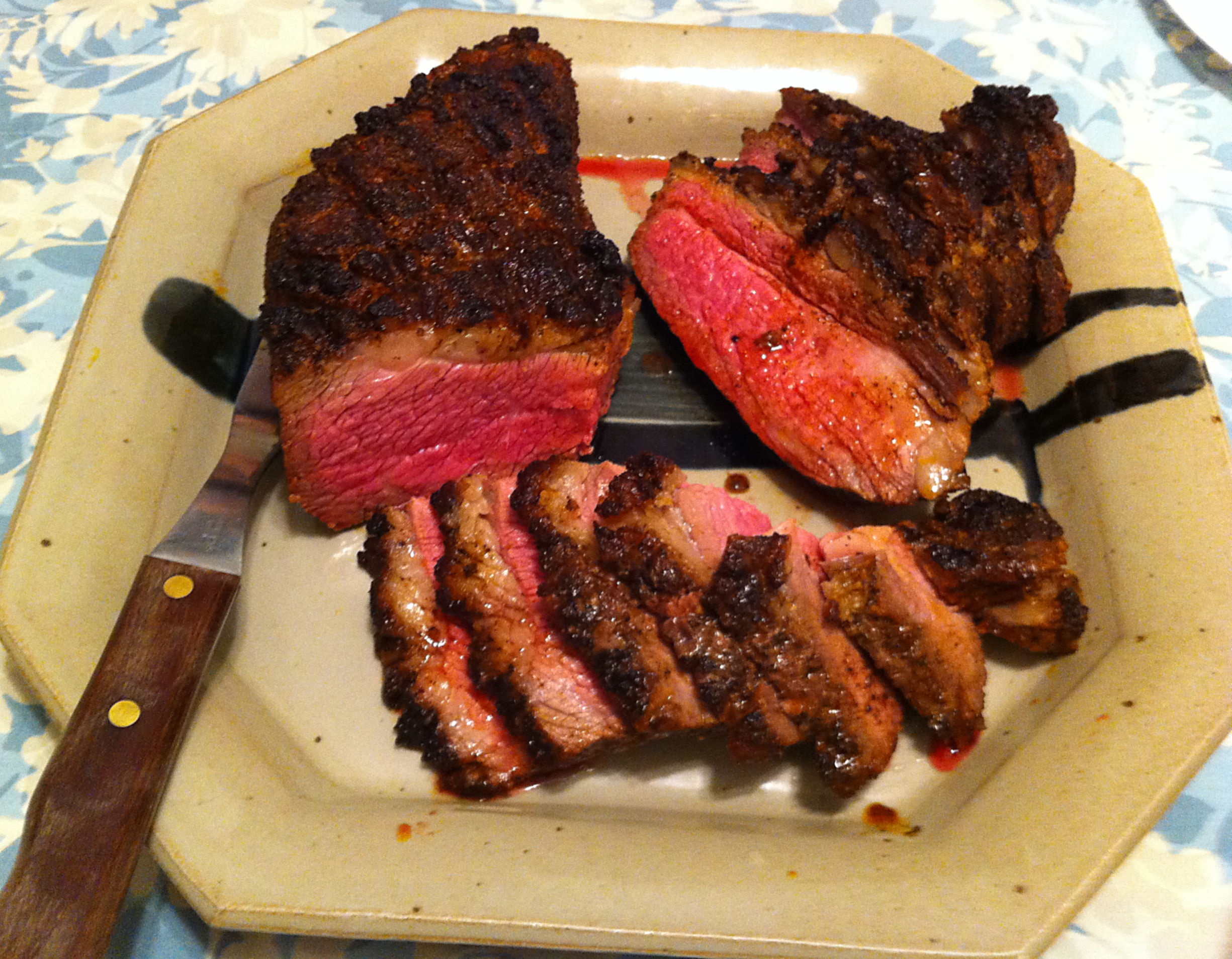 I had decided to barbecue chicken for the Fourth of July, but what flavor. A last year, I made this dish for my sister Karen, but I was overly cautious with the spices. This time I took my own advise and bumped up the spice level to four tablespoons. To go with the meat heavy main I made several vegetable sides—corn, grilled vegetables and a couscous salad. For a patriotic desert, I served strawberries, whipped cream, and blueberries.