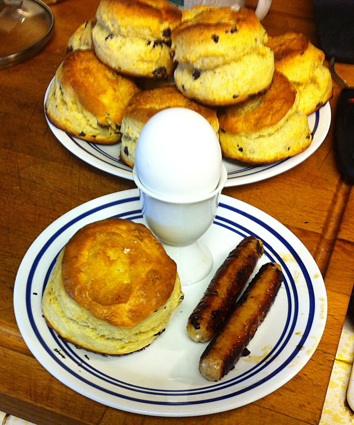 Jan was using one of her few opportunities to sleep in this morning. I—of course—woke up at 6, like I usually do. I decided to surprise her with scones this morning.
