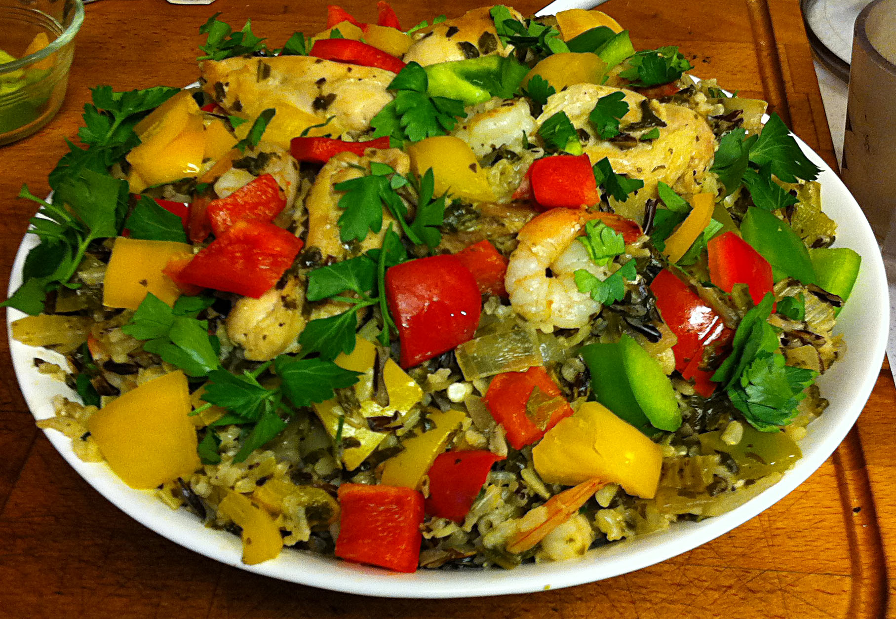 Filed under California Fusion, Main Dishes, Poultry, Rice, Seafood, Shrimp