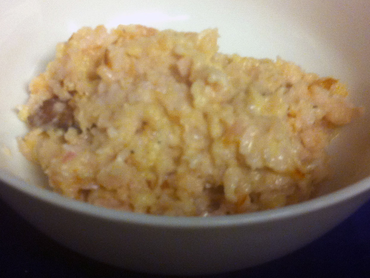 I went to the dentist today, so I have joined Jan’s soft food diet for the day. Despite last night’s yam fail, she sent me a Martha Stewart recipe she wanted me to try. It is not really in my nature “to do” Martha Stewart. I did not change everything about the recipe, but just about. This is more of a “inspired by” rather than an “adapted from” recipe.