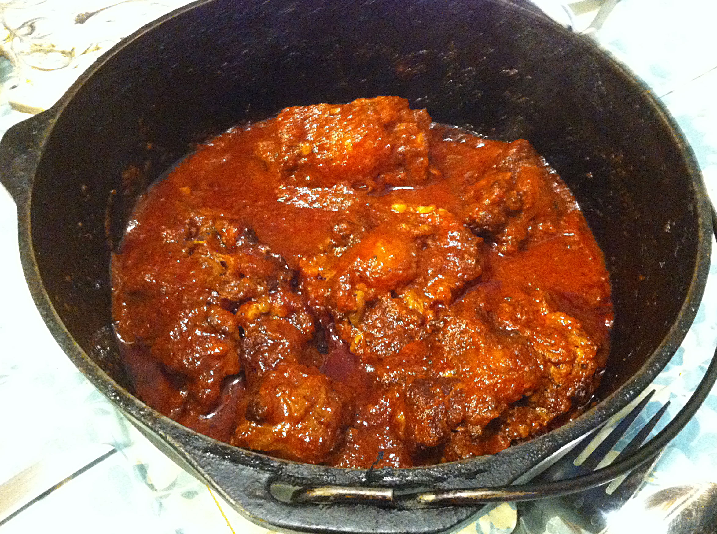 I have been craving oxtails recently. I do not make them very often, because of Jan’s dietary restrictions and because, for the same reason, they are not exactly a health food—they are very fatty. One way to reduce the fat is to make them the day before, skim off the congealed lard, and reheat them the next day.