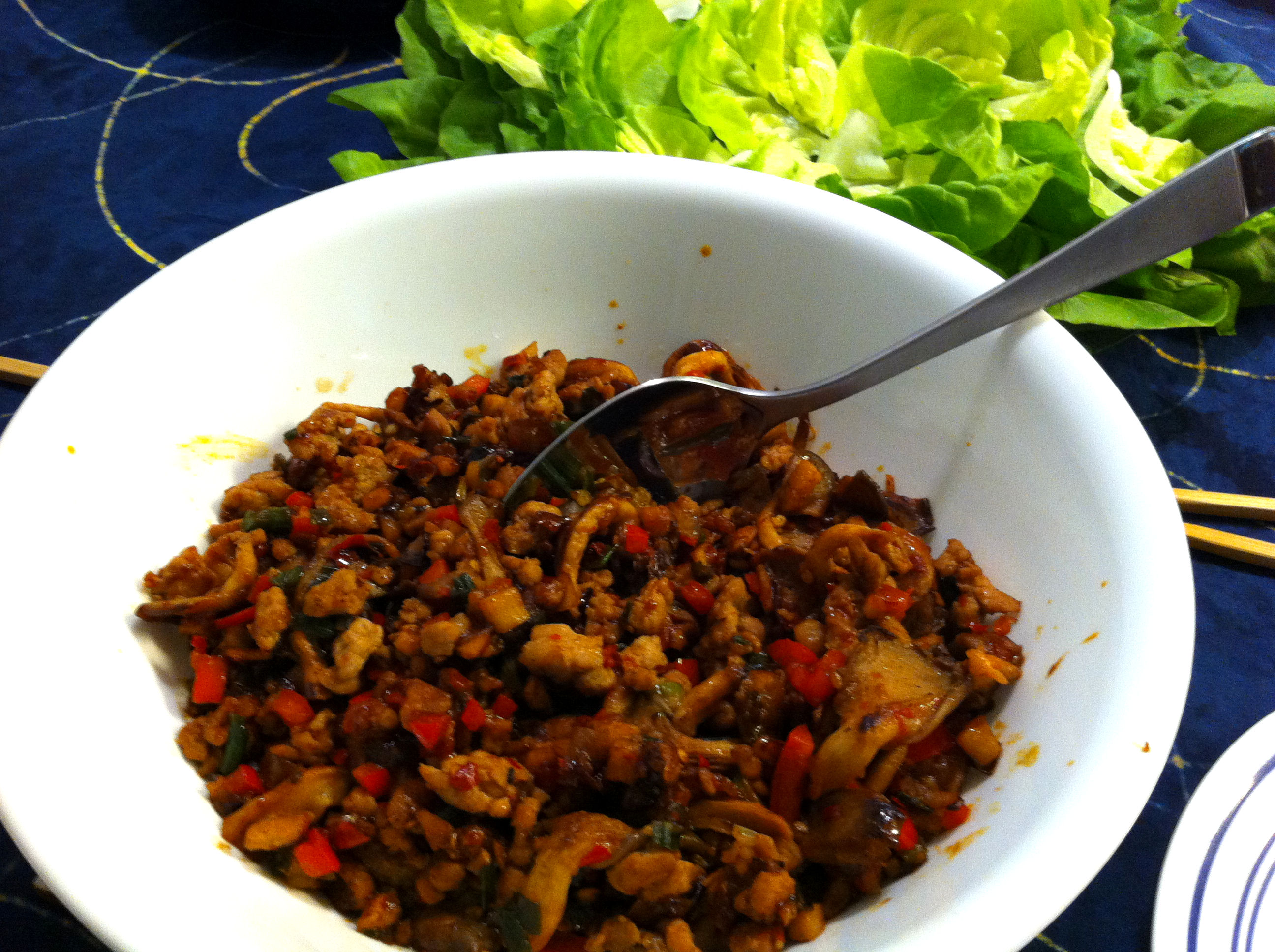 Lettuce cups are very much in keeping with a Ketogenic diet, high protein and leafy greens. The problem with the original recipe is the Hoisin and sweet chili sauces, both of which have added sugar. Hoisin sauce is mostly bean paste with sugar and Chinese Five Spice added. I will make a keto hoisin sauce by leaving the sugar out. I will replace the sweetened chili sauce with a sugar free chili garlic sauce.