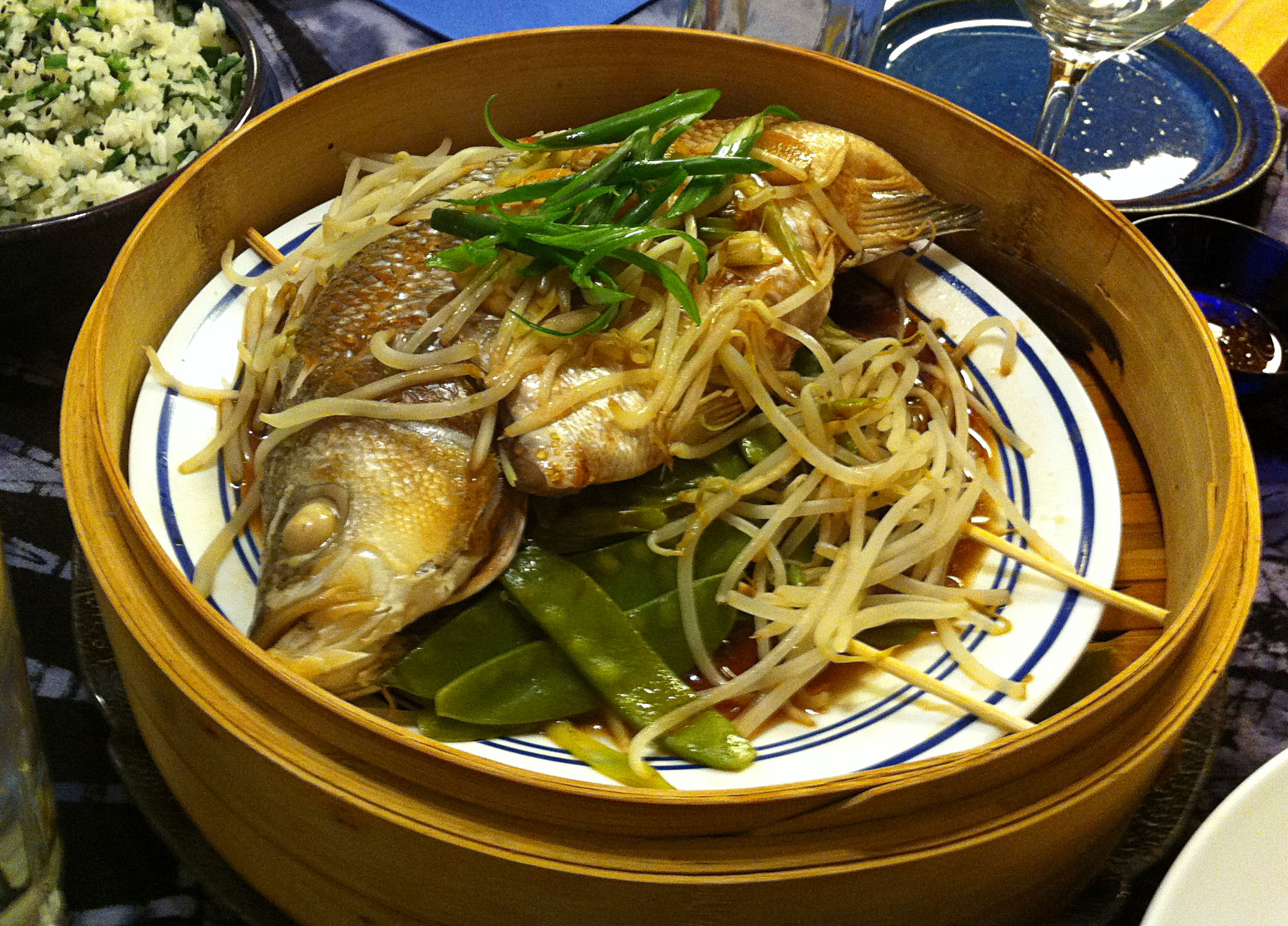 I have made steamed fish before, but this one is for a New Year’s dinner. I will be stuffing this one with “lucky” ingredients. Also, instead of cutting the ginger into match sticks I will be leaving the, as “golden coins,” because that is the way much of Chinese symbolism works; if it looks like the thing, it is the thing.
